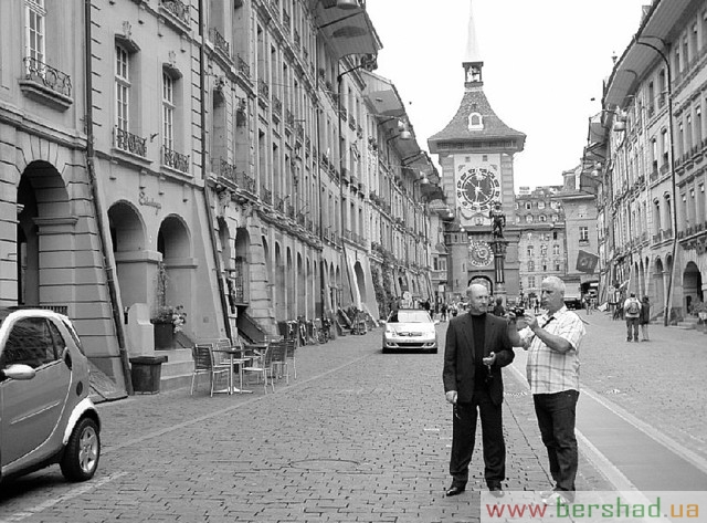 Наступного дня ми продовжили подорож дорогами Франції і вже через години три непомітно потрапили до Швейцарії. Оскільки головні заходи з презентації Вінниччини мали відбуватися надвечір у столиці країни Берні, то нам, журналістам, організували працівники українського посольства ще й поїздку до Женеви, де розміщене Європейське відділення багатьох інституцій ООН. Знову серйозний догляд лише при вході в оонівське приміщення, швидка видача нових бейджиків з написом «Преса» і призвіщем та ім’ям. А потім – вільне пересування по всій території і приміщеннях. Допомагала нам в цьому наша співвітчизниця і колега, яку, до речі, вже вдруге обрали своїм головою члени асоціації журналістів, які тут акредитовані. Правда, коли я запитав її про зв’язок з нашою вітчизняною спілкою журналістів, то почув у відповідь, що він відсутній повністю й до неї на контакт від спілки ніхто не виходив. Знайомилися ми і з умовами праці акредитованих тут журналістів, навіть пообідали в оонівській їдальні, де на вибір пропонується до десятка кухонь різних груп народів.