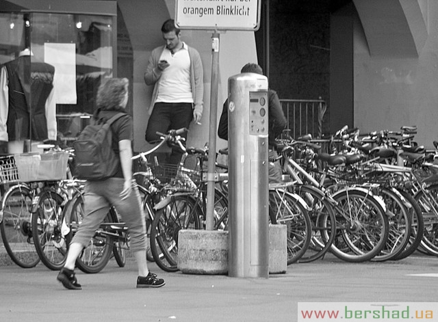 Німецьке місто вразило чистотою і охайністю, а ще великою кількістю велосипедистів (на знімку). Навіть мами користуються ними і везуть на акуратних причепах, критих плівкою, своїх маленьких дітей. В магазинах, як на наші статки, все дорого, особливо спиртне. Зате пиво доступне всім – від дешевого до дуже дорогого. В десять годин вечора вже не побачиш людського потоку – німці і особливо їхні діти – всі прагнуть бути вдома. Магазини закриваються рано. Пізно ввечері помітив працюючих лише два паби, тобто кафе, але вони були більше місцем збору співвітчизників. Як от «Анталія» для турків.