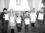 На знімку (зліва направо): призери змагань серед наймолодших учасників Максим Манченко, Поліна Романчук, Анна Сокур, Артем Мазур, Юлія Чечельницька та Сергій Менюк. Фото Василя ВЕРБЕЦЬКОГО. Першість міста з шашок-64
